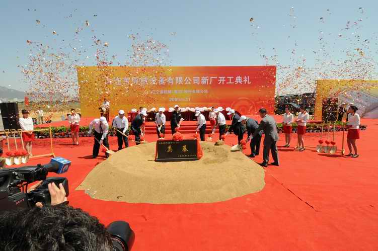 上圖為大連市市委書記夏德仁等領(lǐng)導(dǎo)為寶原新址奠基