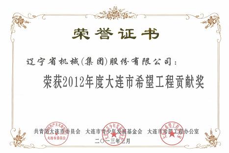 集團公司榮獲“2012年度大連市希望工程貢獻獎”稱號