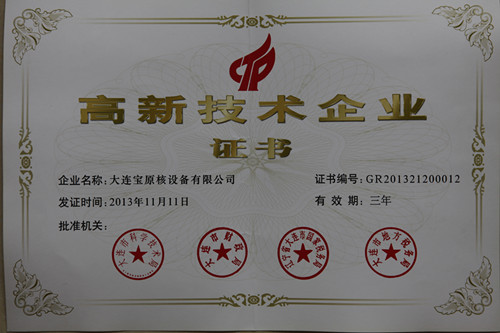 近日,寶原公司獲得了大連市高新技術企業證書。寶原公司于2012年正式啟動申報高新技術企業,歷時16個月,在市、區科技局的幫助指導下,經集團公司領導與公司領導、技術、財務等相關部門的共同努力,于2013年10月份順利通過評審,并于近日獲取了高新技術企業資質證書。獲得該證書不僅為公司研發新產品、新技術及拓展市場夯實了基礎,還進一步提升了公司在裝備制造行業的技術能力。